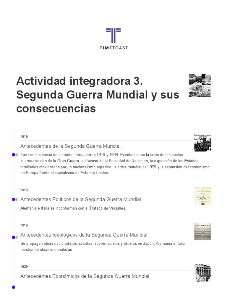 Actividad integradora 3 segunda guerra mundial y sus consecuencias. 1929 El estado interviene en la economía para estabilizar la crisis OCT 1929 La crisis Él crac de 1929. Mi campus Módulo 10 Semana 2 4 de marzo - 10 de marzo Actividad integradora 3. Elabora una línea del tiempo que incluya los antecedentes y el desarrollo de la Segunda Guerra Mundial la Guerra Fría y la caída del muro de Berlín.
