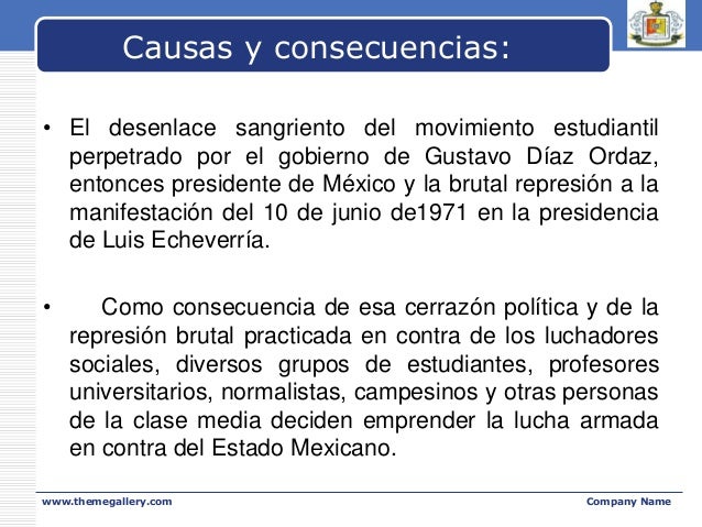 La hegemonÍa del partido oficial durante cerca de 70 aÑos tiene como consecuencia que al inicio del proceso de consolidaciÓn de la sociedad mexicana luego de las consecuencias de la revoluciÓn mexicana mantuvieran en el poder ejecutivo a quienes los grupos de poder decidieran conservando a la vez el control absoluto de los poderes legislativo y judicial. La economía mexicana estuvo basada en la agilidad del sector industrial contrayendo la estabilidad de precios y ajustándose a los problemas productivos y financieros por los que pasó el país. Ampliación del artículo 145 del código penal donde encarcelaba a todo aquel que induzca o realice actos de sabotaje subvierta la vida institucional del país o que perturben el orden y la paz pública.